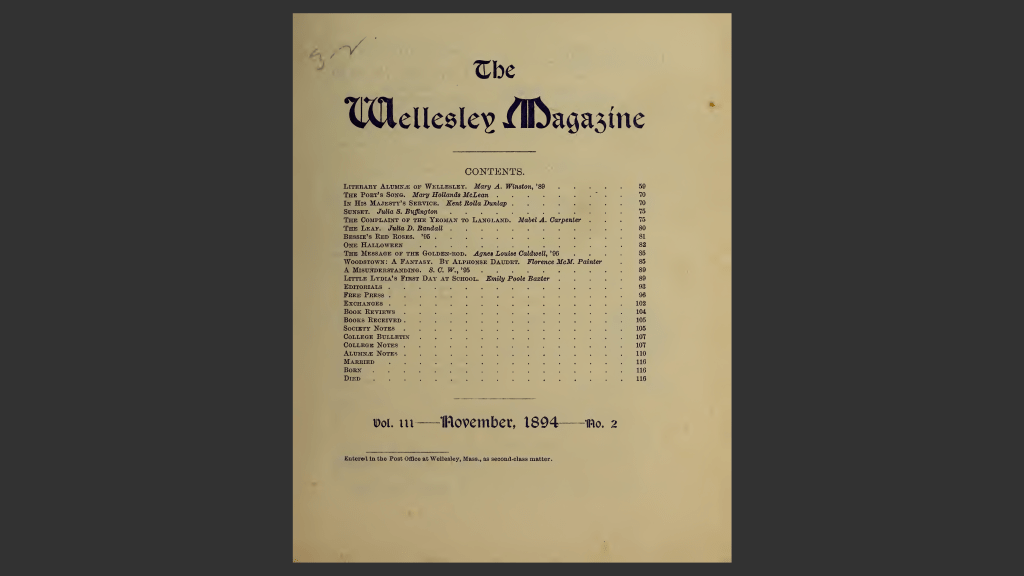Mary A. Winston, ’89, Wellesley Magazine, 1894, No. 2.